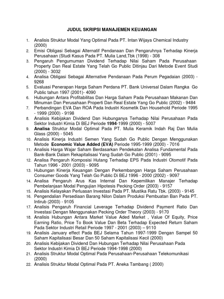 Skripsi Manajemen Keuangan 200 Judul Terbaik Full Pdf M Jurnal