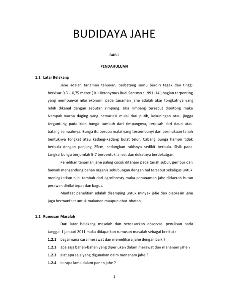14 Karya Tulis Ilmiah. Budidaya tanaman Jahe gambar. Tumbuhan jahe merupakan salah satu tanaman rempah penting memiliki rimpang yang sangat bermanfaat antara lain sebagai bahan bumbu masak memberi aroma serta rasa pada makanan seperti biscuit roti kue kembang gula dan berbagai minuman yang berbahan dasar dari jahe.