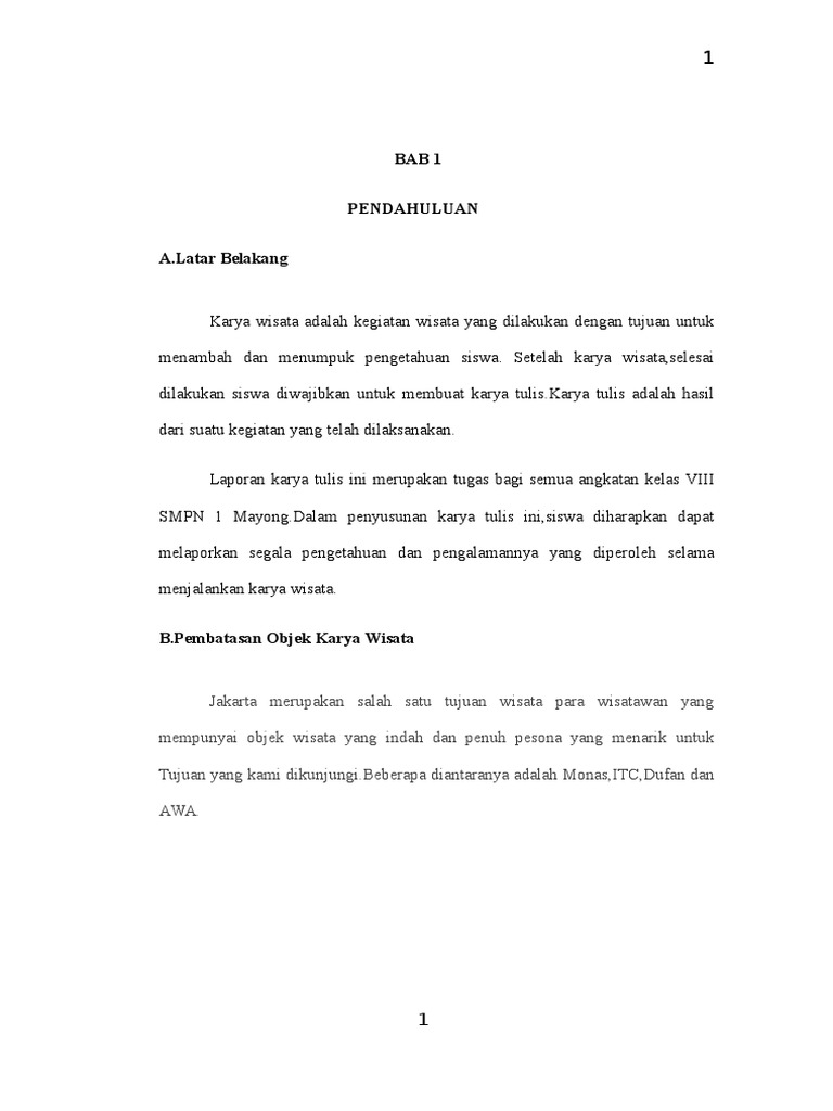 Disamping itu penyusunan laporan ini merupakan tugas mata pelajaran bahasa Indonesia. Laporan karya wisata siswa smp negeri 1 seyegan ke jakarta bandung tanggal 20212223 desember 2014. Laporan karya wisata siswa smp negeri 1 seyegan ke jakarta-bandung tanggal 20212223 desember 2014.