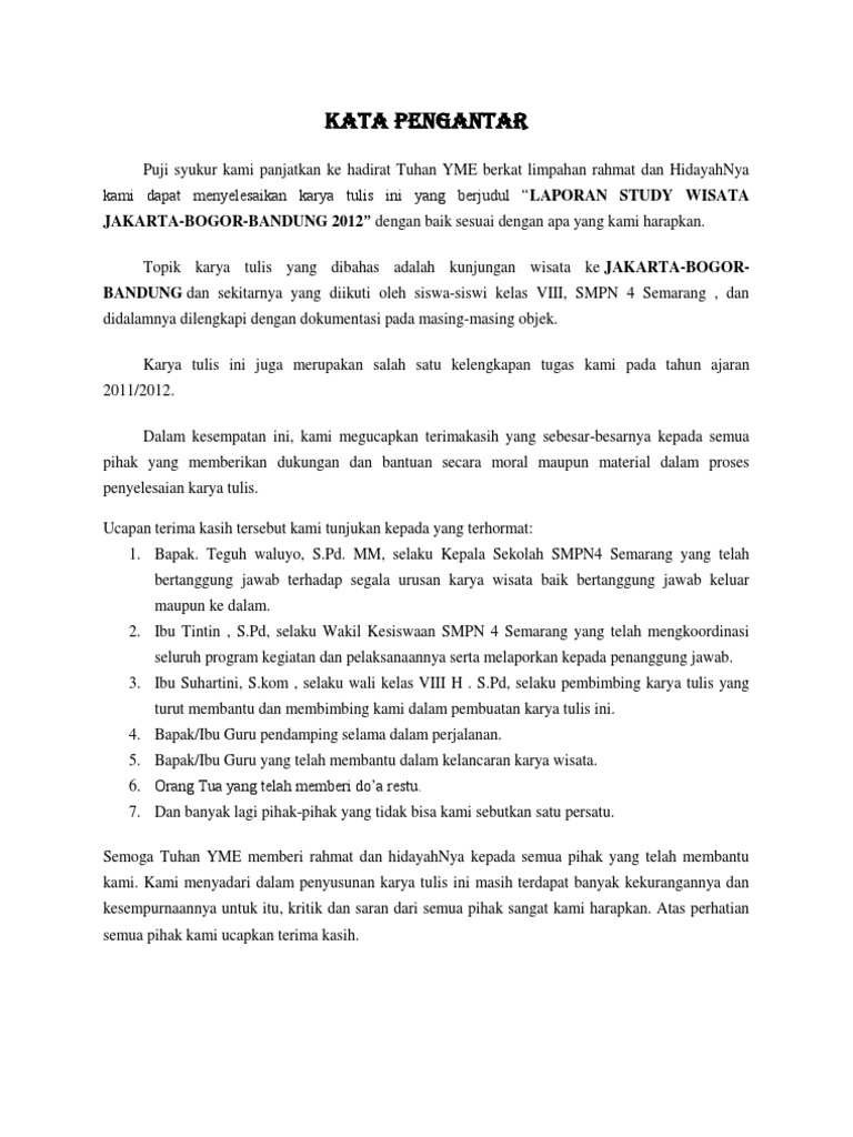 Kata Pengantar Laporan Study Tour Seputar Laporan