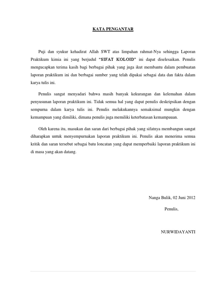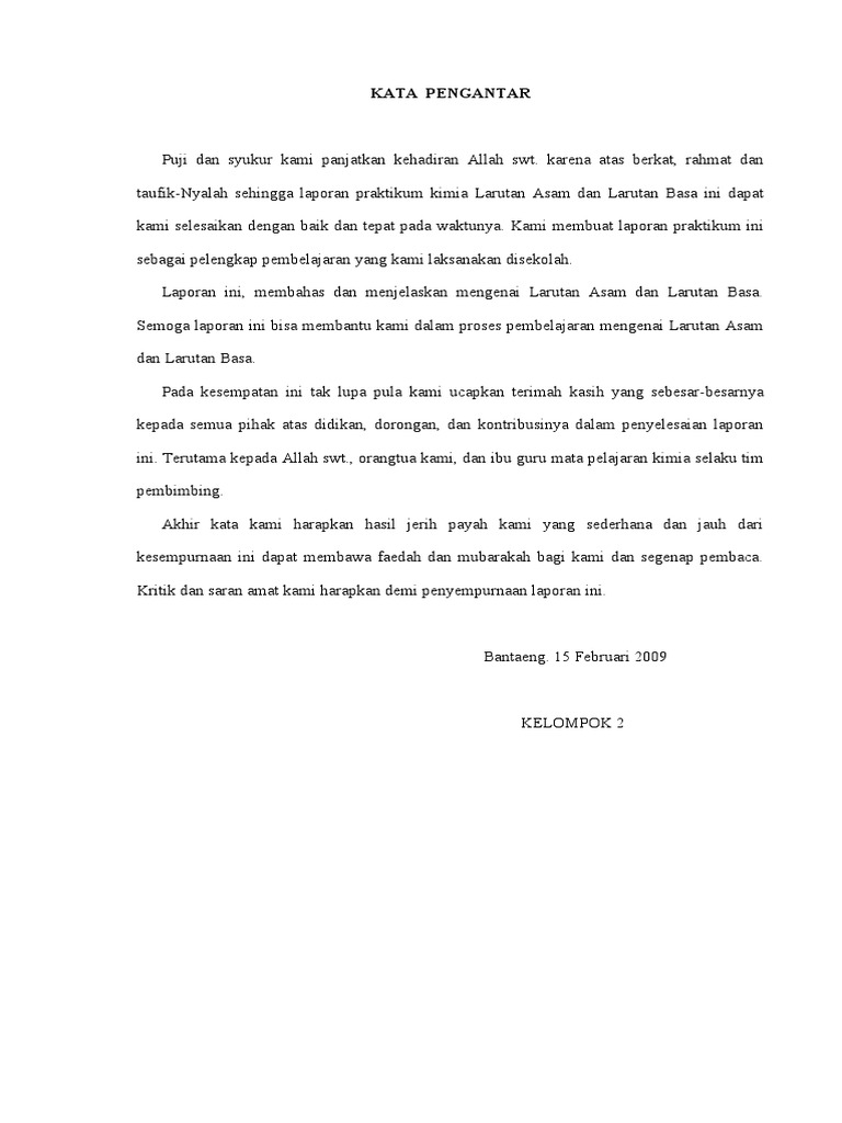 Contoh saran dalam laporan praktikum kimia. Saatnya anda membuat laporannya bagian paling sulit dan butuh proses yang agak lama Hanya Sebentar jika anda melakukannya dengan giat yaitu adalah membuat sebuah Laporan Prakerin yang diharuskan dan diwajibkan di sekolah-sekolah kejuruan. Contoh kata pengantar laporan praktikum dalam bahasa Indonesia berisi beberapa contoh kata pengantar dari beberapa laporan praktikum. TUJUAN PERCOBAAN Mengetahui Ciri-ciri Asam dan Basa C.