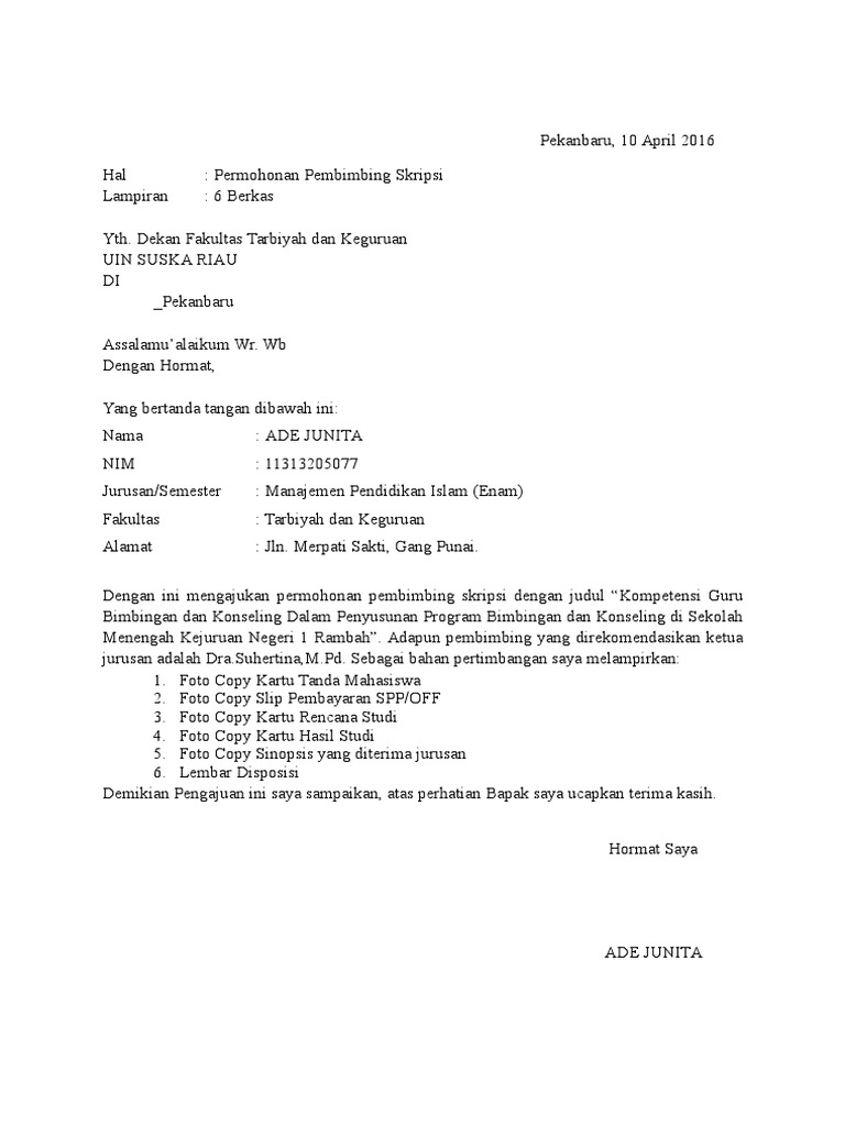 Contoh Permohonan Judul Skripsi Uin Suska Riau