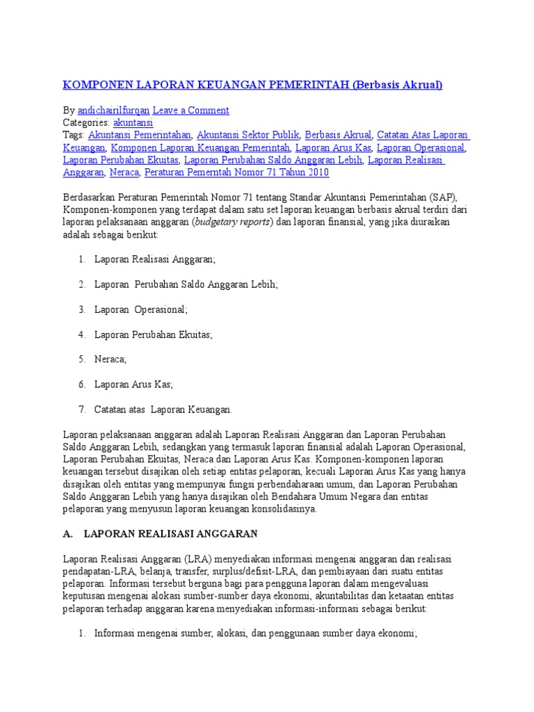 Pdf Komponen Laporan Keuangan Pemerintah Berbasis Akrual Edho Satria Academia Edu