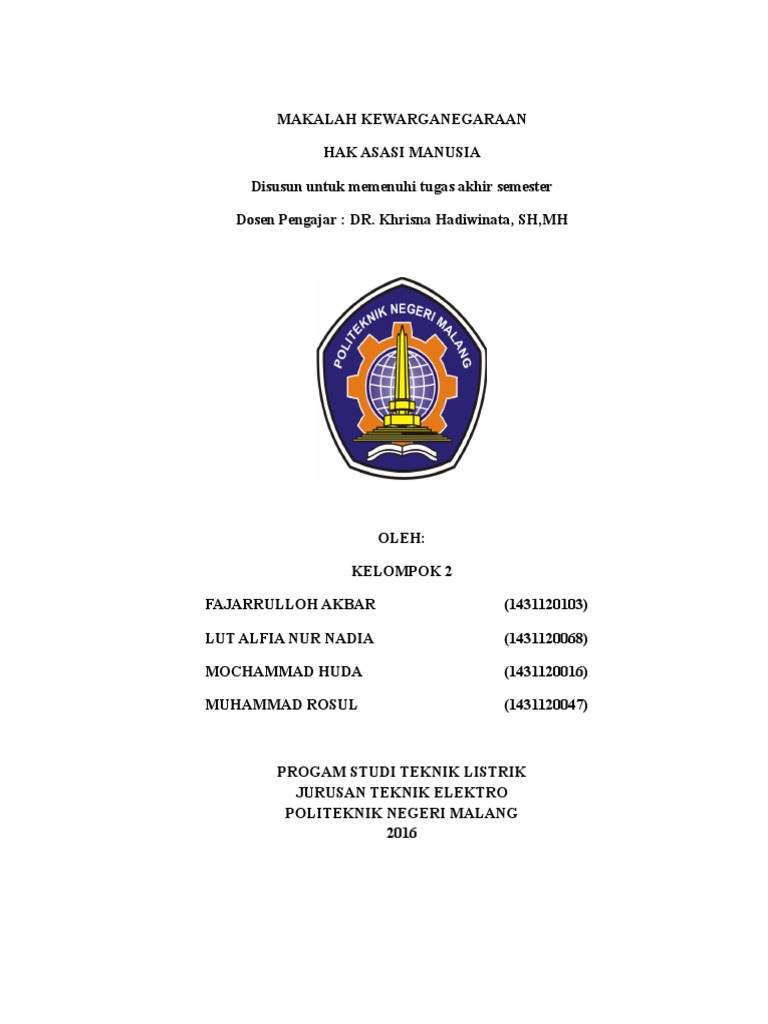 HAK ASASI MANUSIA Makalah Makalah Ini Dibuat dalam Rangka Tugas dan Disampaikan pada Mata Kuliah Kewarganegaraan Disusun oleh. View Makalah Hak Asasi Manusiadoc from ART MISC at George Mason University. Makalah Hak Asasi Manusia.
