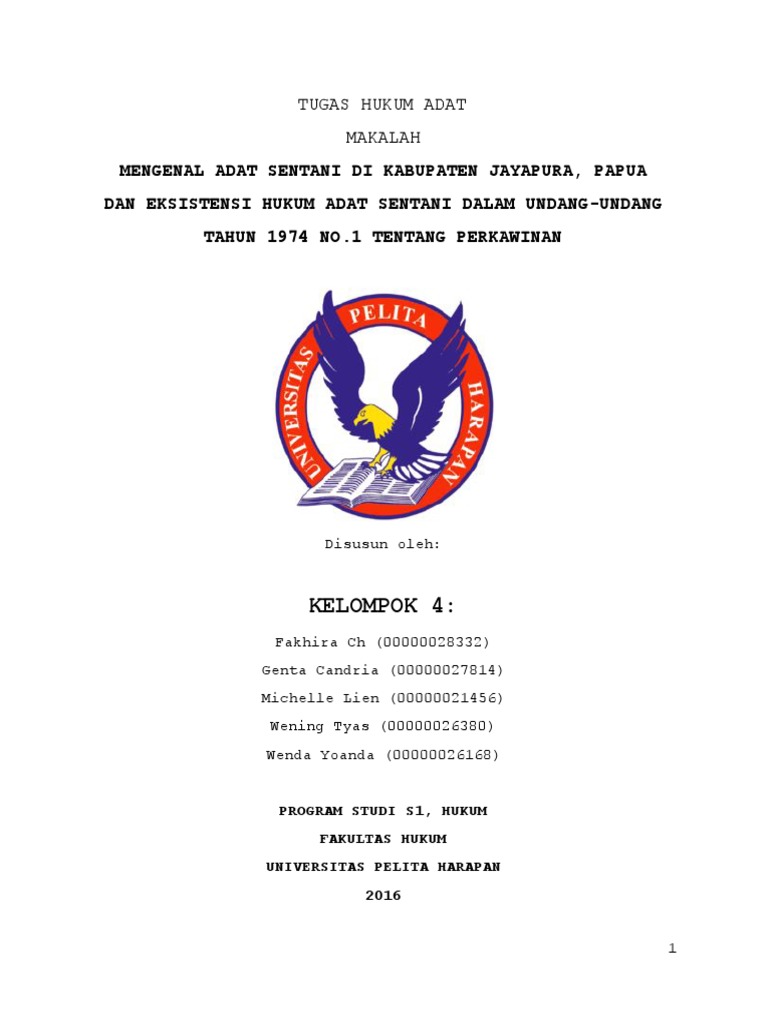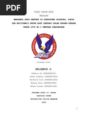 Makalah hukum adat papua pdf. Hukum Adat adalah aturan atau norma tidak tertulis yang hidup dalam masyarakat hukum adat mengatur mengikat dan dipertahankan serta mempunyai sanksi. Peradilan adat di Papua diatur berdasarkan Peraturan Khusus Provinsi Papua No20 Tahun 2008 tentang Peradilan Adat Papua yang selanjutnya disebut Perdasus Peradilan Adat. RONALD PARINDUAN LBN TOBING 2016020116 ROMENTAL SOPYAN.