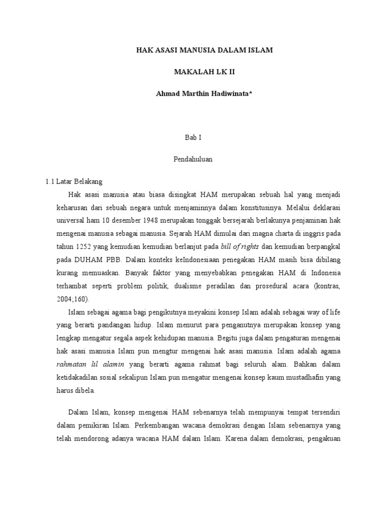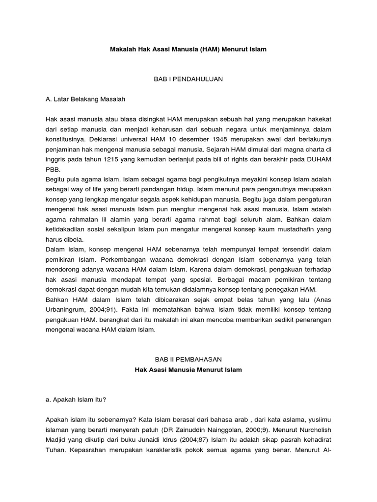 Makalah tentang hak asasi manusia menurut islam. Hal ini memberi kepastian bahwa pandangan Islam yang khas tentang HAM sebenarnya telah hadir sebelum deklarasi universal HAM PBB pada 18 Shafar 1369 Hijriyah atau bertepatan dengan 10. 17 Makalah Tentang Ham Dan Gambarnya. Kata ini demikian bergaung seantero dunia.